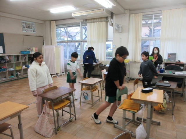 2組は、理科「ものの温度と体積」の学習が始まります。その前に、みんなで理科室に実験材料を取りに行きます。さて、今日はどんなものを使うのかな?