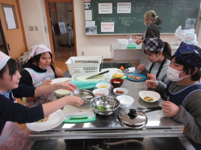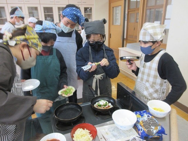 3/3(火)6年2組調理実習 餃子の皮ピザ!