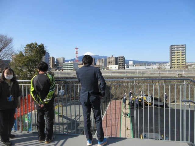 学校施設はハード面(建物自体の安全性)とソフト面(子供たちへの安全指導)の両方が大切になります。活動テラスからの富士山は最高のロケーションですが、利用につきましては子供たちへしっかり指導した後となる見込みです。