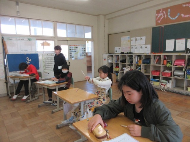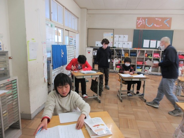 7の1組は、「感謝の気持ちを伝える」の学習です、お世話になった先生へ感謝の気持ちを伝える作文を書いています。今日は下書きですが、いろんなことを思い出しながらノートに書いています。