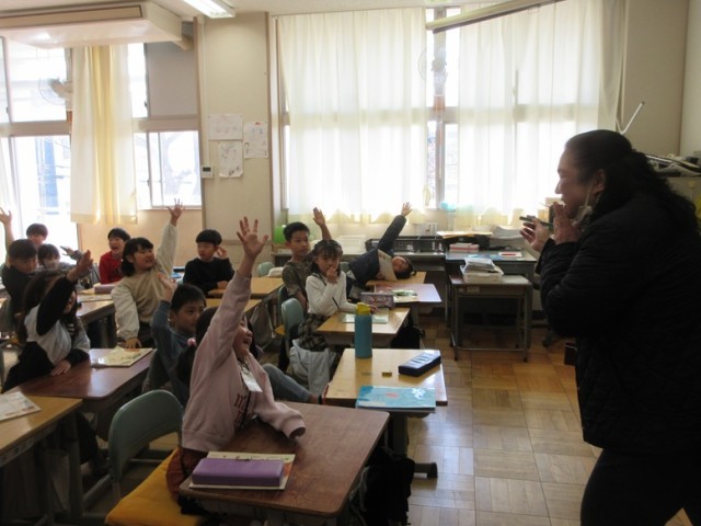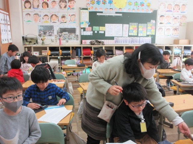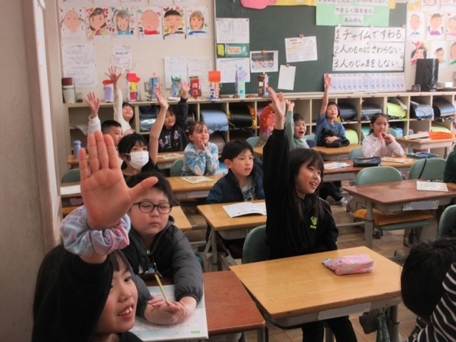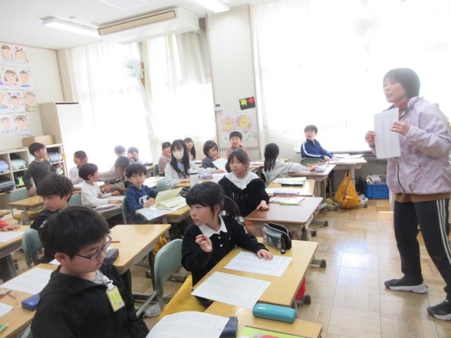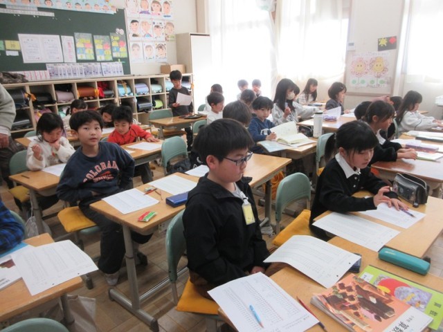 2年1組は、書写「硬筆」です。終わった後、みんなでかけ算九九の復習をしていました。みんな、発表をしたくてたまらない様子でした。九九に自信のある子が多いようです。