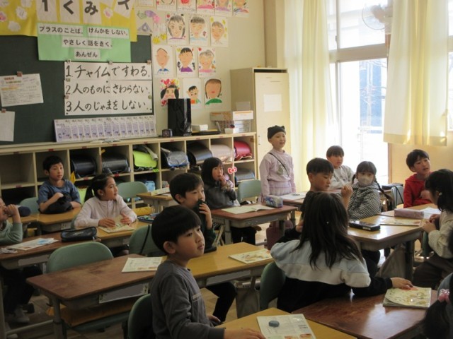 2組は、算数「かけ算九九」の学習です。しっかり覚えた後は、スピードにも挑戦していました。正しく速く言えるといいですね。