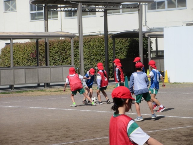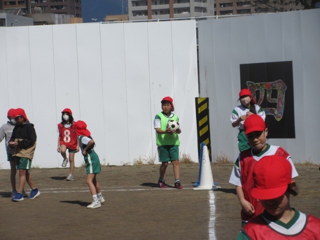 2組は、体育「サッカー」です。広いグラウンドで、思う存分、のびのびやりたいですね。我慢してくださいね。