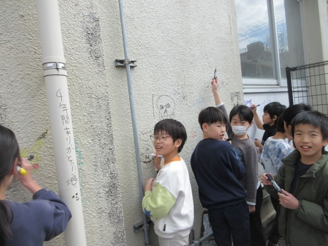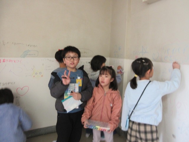 普段ならできないこのとができて、みんな大興奮です。感謝の気持ちの言葉も多く書かれています。60年近く子供たちと共に過ごした旧校舎とのお別れも1日1日と近づいていきますね。