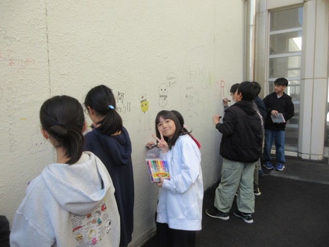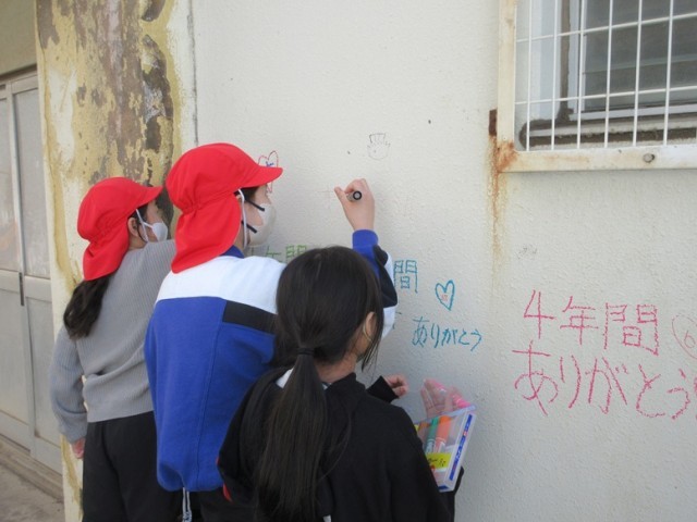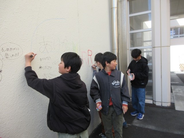 5年生も思い思いの絵やメッセージを旧校舎に残しました。来年度は、最上級生です。旧校舎にそんな誓いを立てたでしょうか。きっと四小を引っ張っていくリーダーになると思います!
