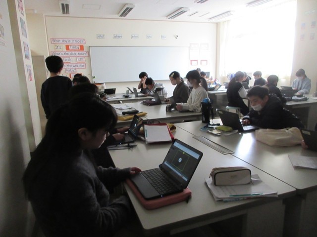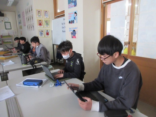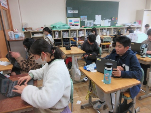3組は、英語「アルファベット」の学習です。カフートで、楽しみながら学習していきます。いよいよ中学校での本格的な英語が始まりますね。