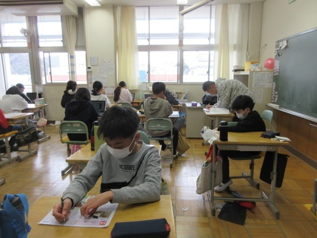 6年1組は、社会科のテストです。いよいよ小学校でのテストも残りわずかでしょうか。最後まで頑張ってくださいね!
