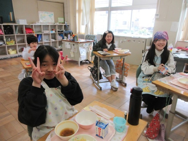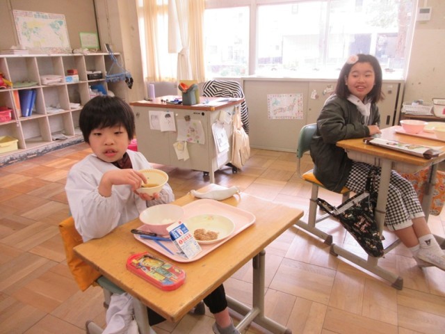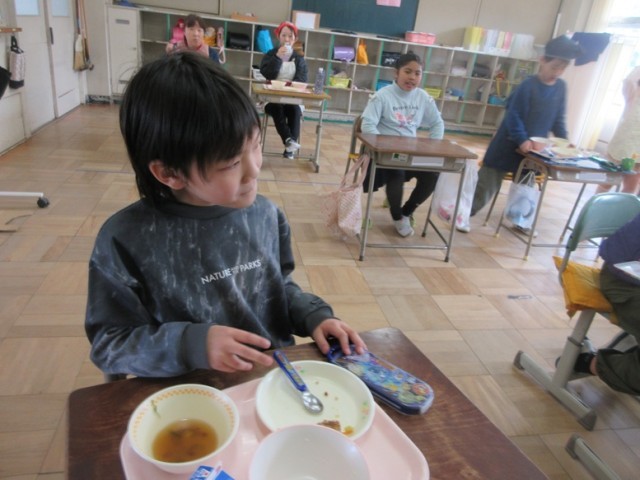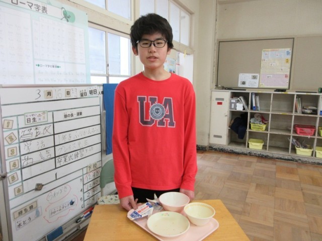 今日は特別日課で、卒業式の総練習もあり、早い子は給食を食べ終えていました。みんな、「おいしかったよ」と教えてくれました。