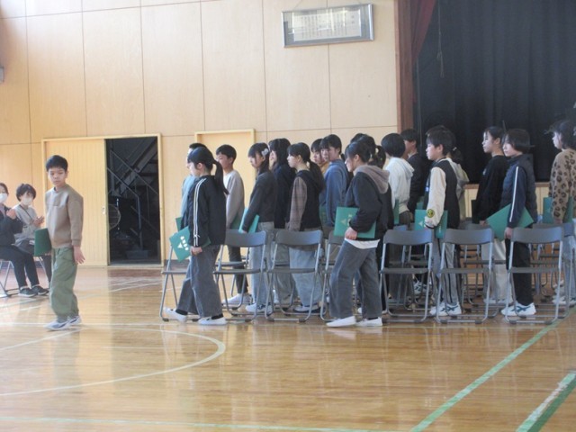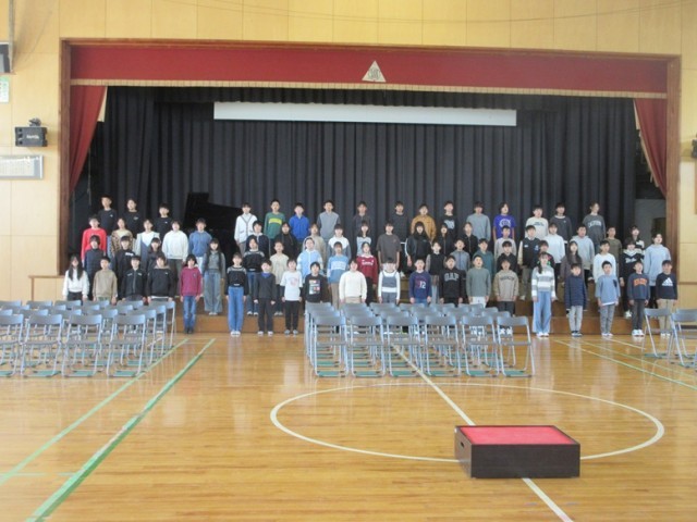 今日の5時間目に卒業式総練習が行われました。厳かな雰囲気の中、5年生、職員も参加して通しの練習を行いました。6年生は自己採点すると何点だったでしょうか。何度も「卒業式は最後の表現の場」と伝えてきました。6年間の思いを胸に自分自身を表現してくださいね。