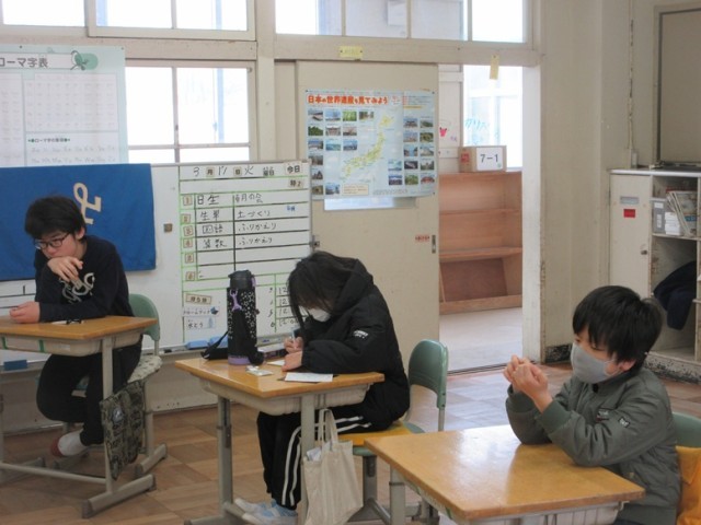 7の1組は、朝の会が始まりました。当番が前に出て、朝の健康観察を行っています。みんな、「はい!元気です!」という返事が多く聞かれました。今日も爽やかな1日が始まります。