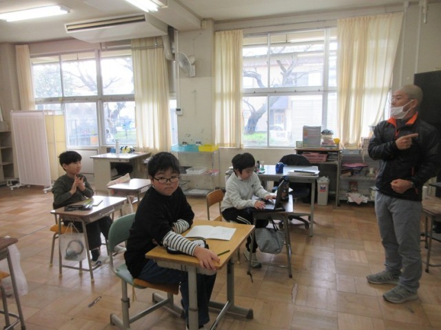 2組も朝の会です。まずは予定を書いて、次に朝の運動をします。その後は、花壇で1組と一緒に作業をします。