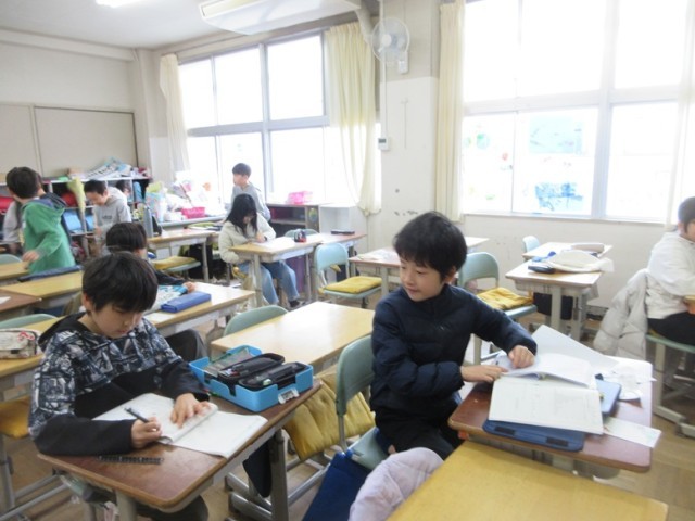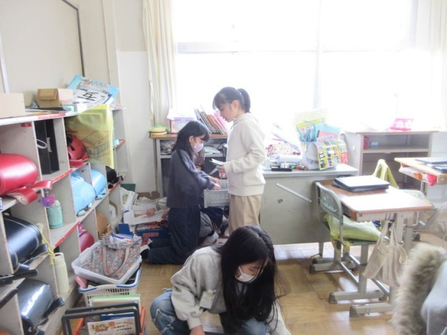 4年1組は、教室の整理をしていました。今日の放課後は先生たちで荷物を北校舎や新校舎へ引っ越しさせましたよ。