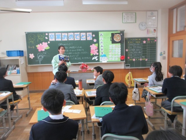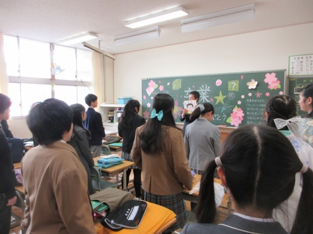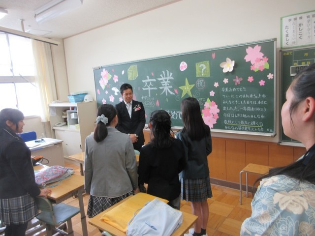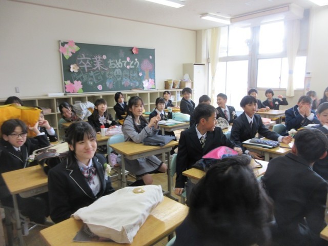 最後の一時を思い出の教室で過ごしました。担任の先生方も出会いと別れに、表情もくしゃくしゃでした。