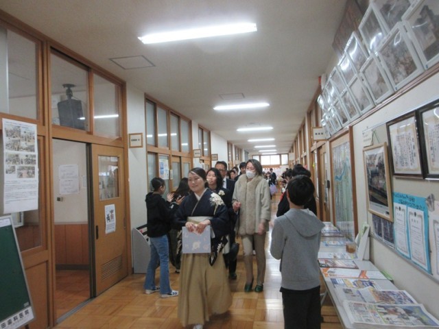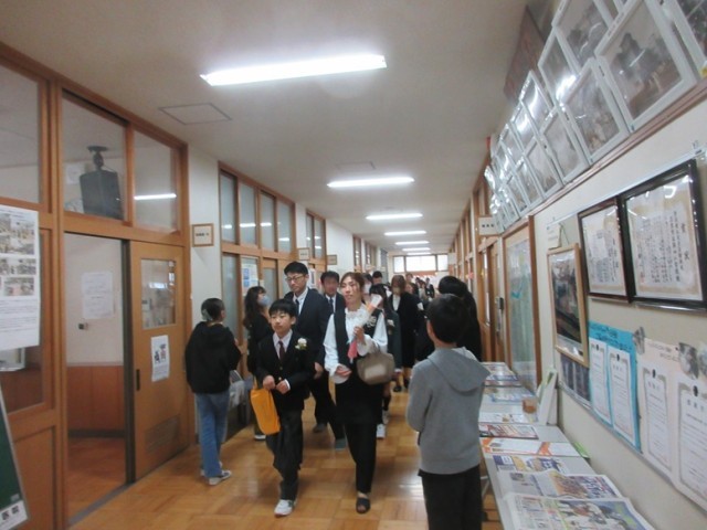 5年生や職員の見守る花道を通り、みんな、晴れやかに第四小を巣立っていきました。