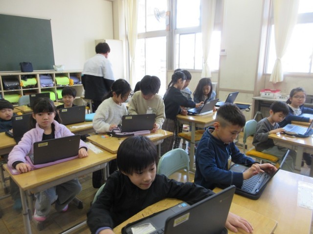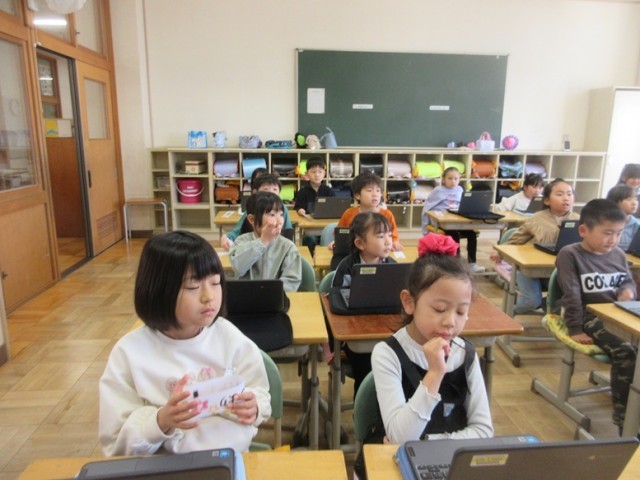 2年生は、全クラス、今年から予定がChromebookで確認することになったため、まずはクラスルームに入れるように、クラスコードを打ち込んでいます。うまくクラスルームに入れた子は、大喜びでした!