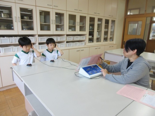 2年生は、身体測定です。身長、体重、視力、聴力を測っています。去年より大きくなっているでしょうね!これからもすくすく成長してくださいね!