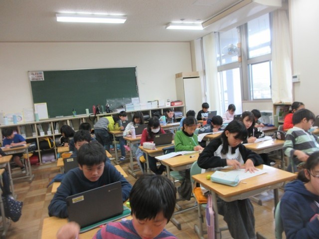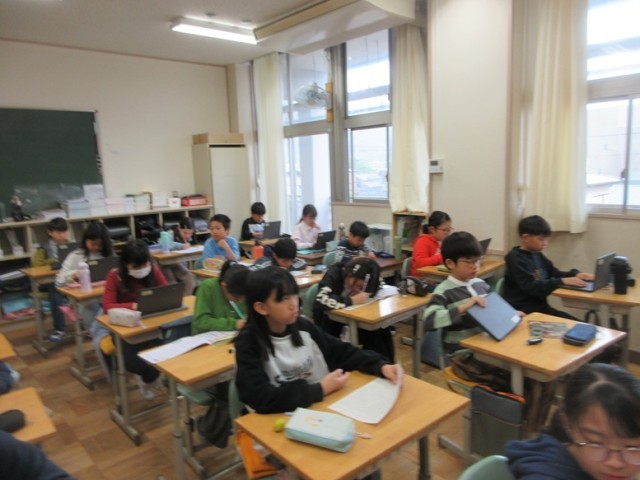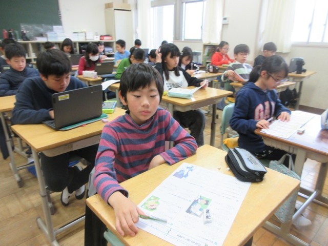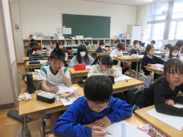 2組は、国語「4年生で習った漢字」の学習です。どのくらい身についているのか、自分でも手応えを感じたことと思います。5年生でもたくさん学びますから読み方、書き方、使い方をしっかり身につけていきましょうね!