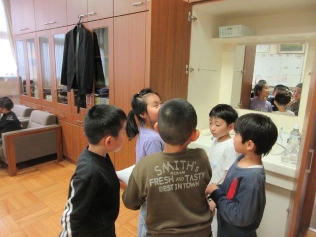 校長室中を見渡し、洗面台を探したり、トロフィーを探したり、興味津々でした。