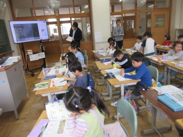 2年1、3組は、国語「たけのこ ぐん」の詩の学習です。「どうして、ぐんぐんじゃなないのか?」「ぐんってどんな感じなのかな?」という発表やつぶやきから授業が発展していきました。