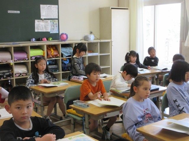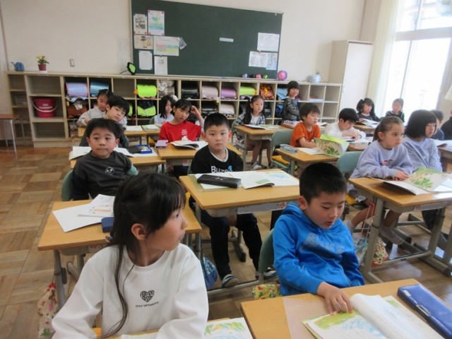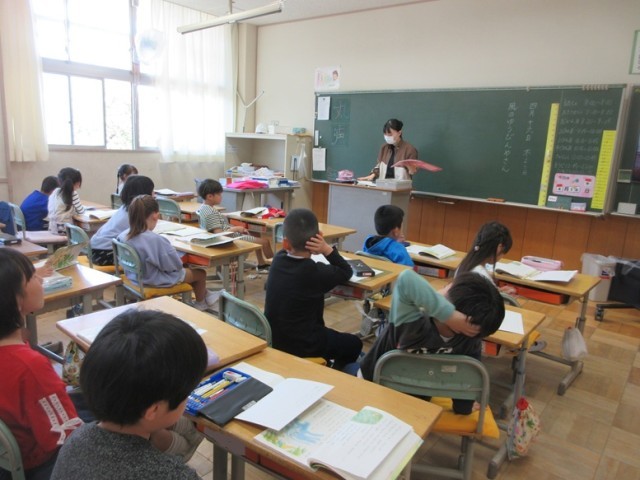 2組は、国語「風のゆうびんやさん」の学習です。「どんなことを感じましたか?」という学習課題について、みんなでそれぞれ感じたことを発表していました。