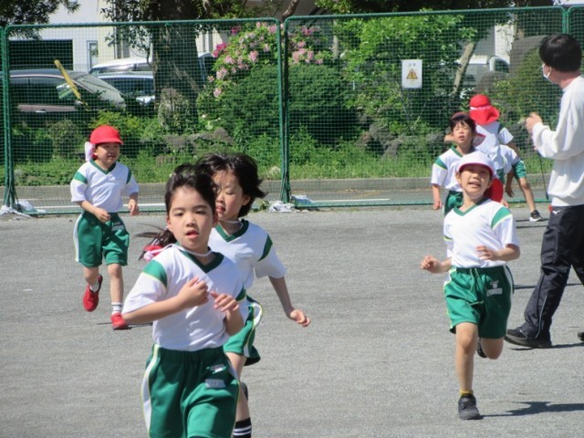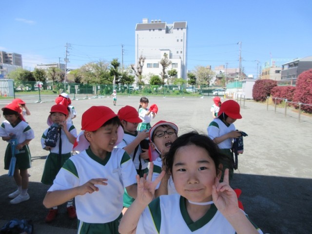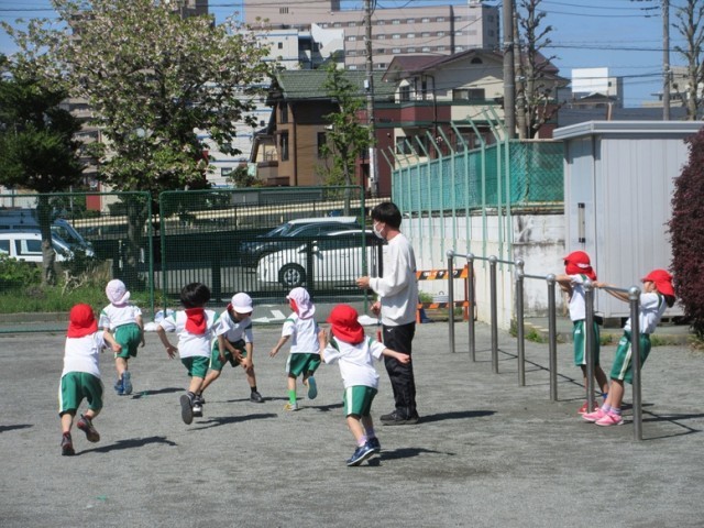 3組は、体育です。「ねことねずみ」をしてかけっこをしていました。今日も夏日で暑かったので、水分補給を欠かせません。まだ体が熱さに慣れていないときこそ、注意が必要です。学校でも休み時間に養護教諭から全校に、水分補給を呼びかけています。