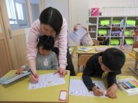 4/16(木)授業の様子 かわいいお客様!1年生の学校探検