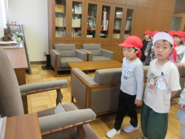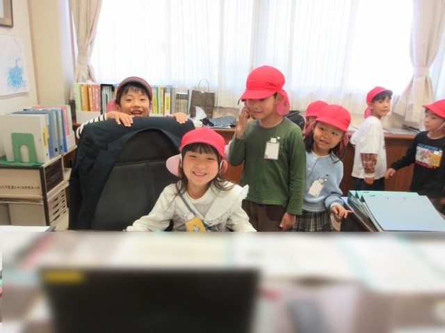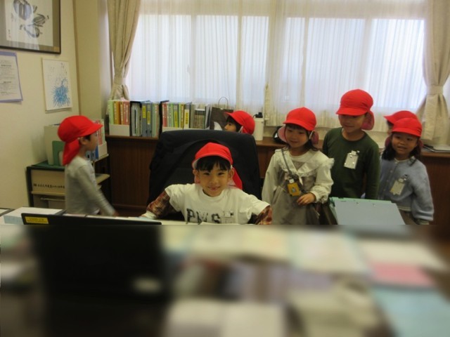 校長室には、はじめこそ恐る恐る入ってきましたが、校長先生の椅子に植わって「えっへん!」なんだかえらくなった気分。昭和天皇がお座りなった椅子は、大事なものなので座れないからね!ところで校長先生ってどんなお仕事してるのかな?
