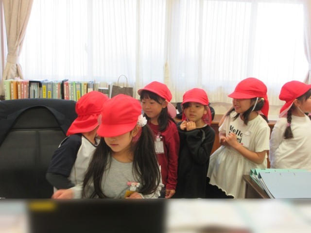 今日は1年生のかわいいお客様が校長室に来ました。学校探検です。ひろ~い学校にはどんな教室があったかな?理科室にはガイコツもあったかな?