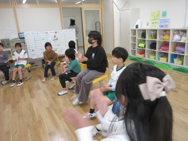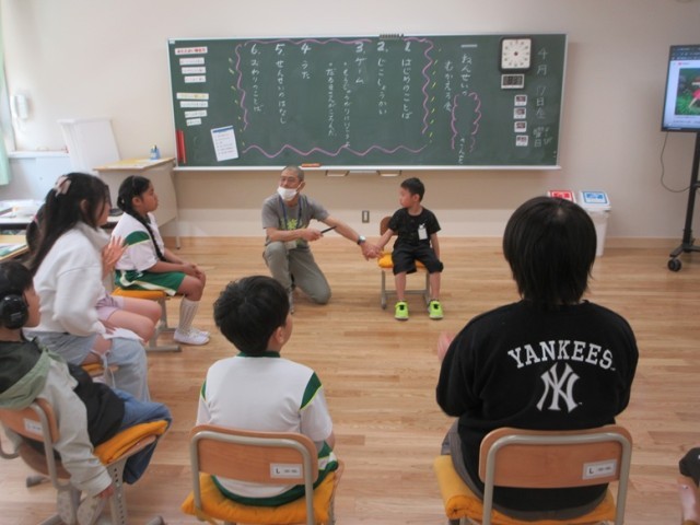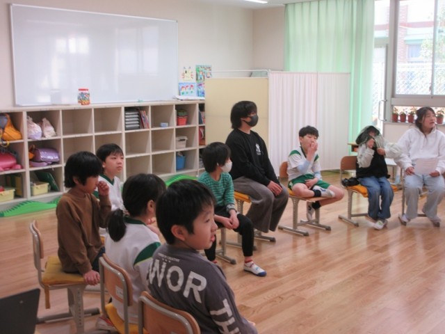 7組では、全校で行う1年生を迎える会よりも一足早く1年生を迎える会を開きました。1年生は、ちょっぴり恥ずかしそうにみんなの前に座って緊張気味でしたが、すぐに周りのお兄さんお姉さんが優しく接してくれました。ゲームでは「猛獣狩り」等を行って楽しい時間を過ごしました。ようこそ7組へ!みんな、優しいお兄さん、お姉さんだから、安心して楽しく過ごしてくださいね!