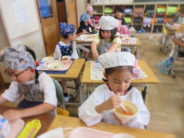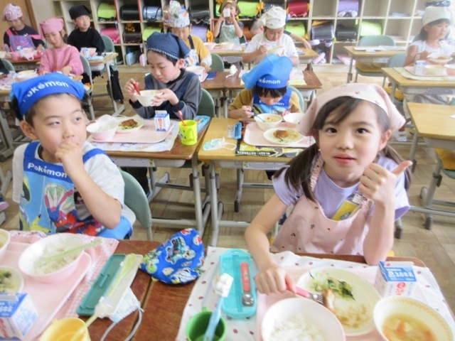 2年生は、多くの子が「お腹減った~!早く食べたいな~」とつぶやいていました。今日の献立では、好き嫌いなく食べられましたか?