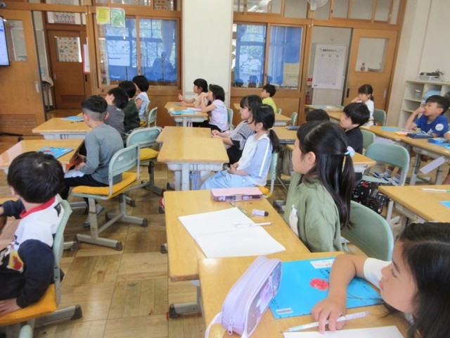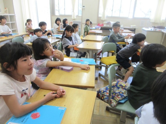2組は、国語「風のゆうびんやさん」の学習です。あげはちょうさんの様子を思い浮かべながら読み取っていく学習です。
