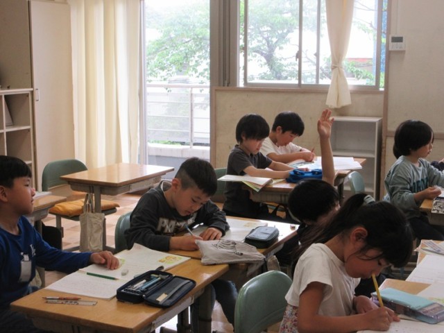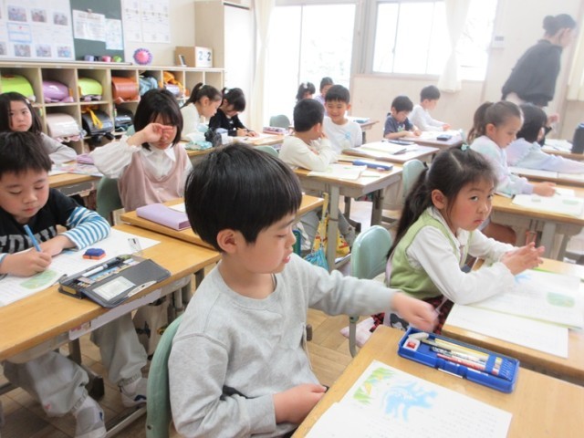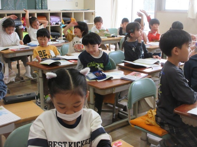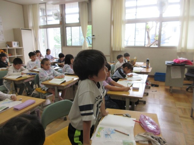 2年生は全クラス国語「風のゆうびんやさん」の授業です。1組は、どんな様子、気持ちか分かるところに線を引きながら読み進めています。
