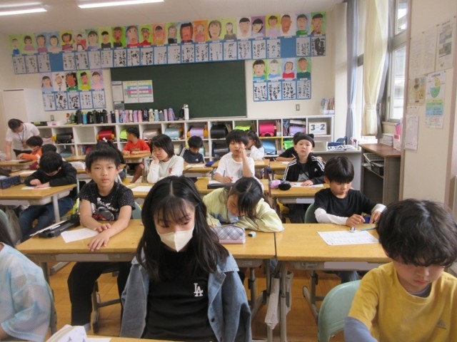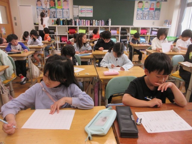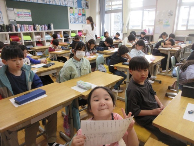2組は、国語「漢字の小テスト」です。こうした積み重ねで力をつけていくんですね!