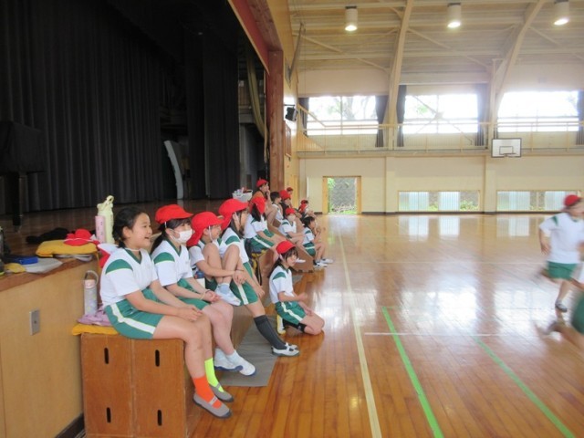 5年1組は、体育「新体力テスト」のシャトルランに取り組んでいます。ドレミファソラシド~♪ドシラソファミレド~♪のリズムに合わせて走りますが、テンポアップしていくとだんだんきつくなります。友達を一生懸命応援している子たちがいます。