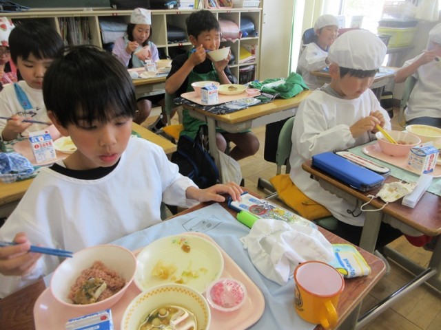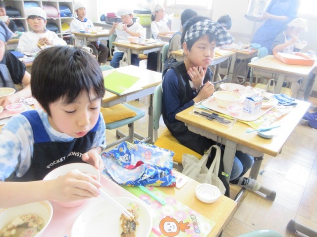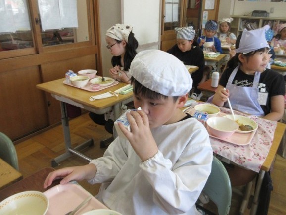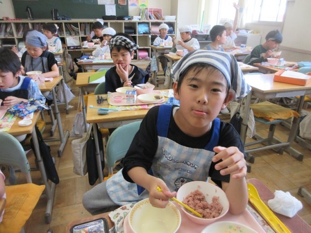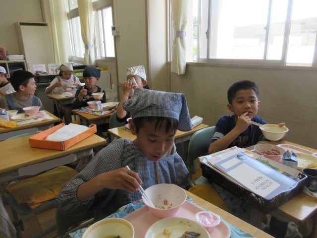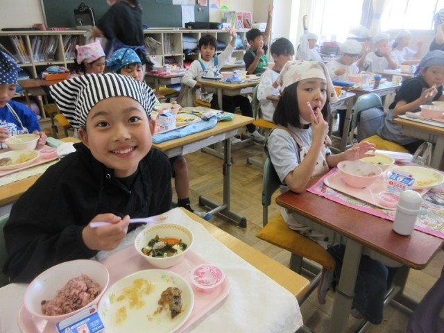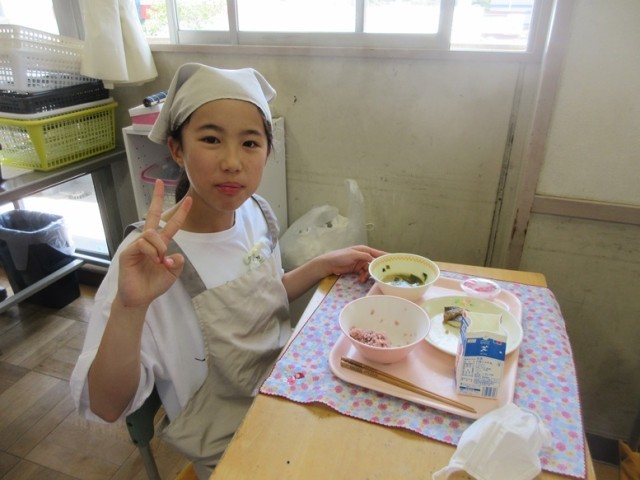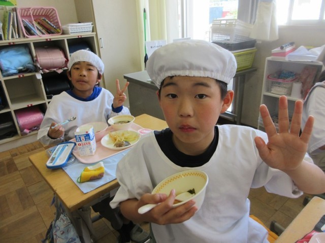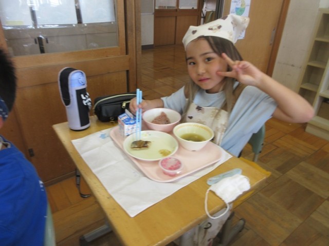 4年1組のラッキーな子は、とってもうれしそうな表情をしていましたよ!おいしい給食がさらにおいしくなりましたね。