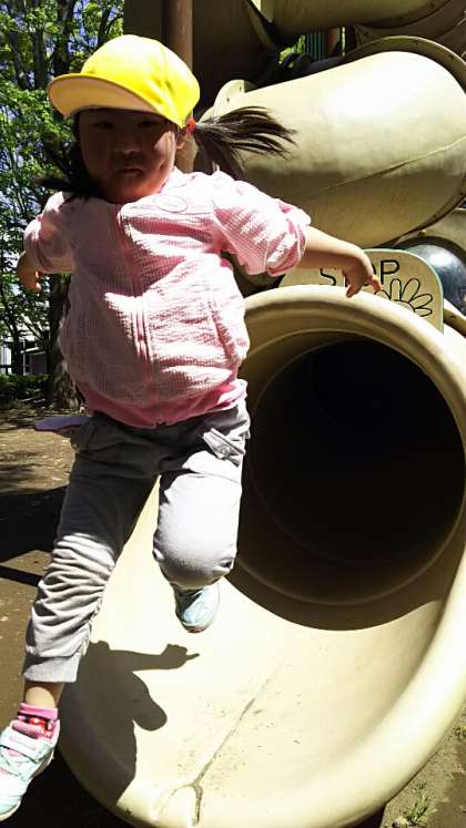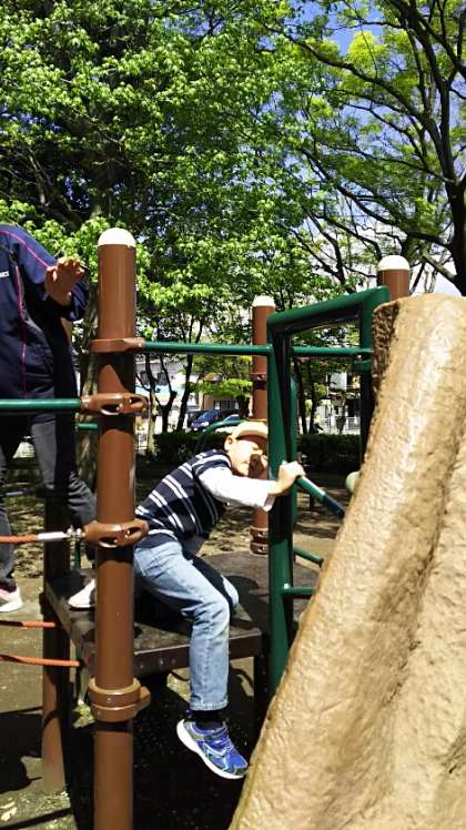 大岡公園の大きな遊具で遊んでいます。