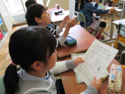 今日は集める物や配る物が多くて、それだけで一苦労。連休明けに初めて使う、毛筆セットの説明のプリントももらいました。忘れないでね。