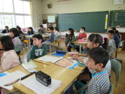 次に作る物について、先生が、実物を示しながら説明をしていました。真剣に聴く表情が、すてきです。