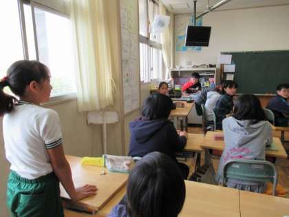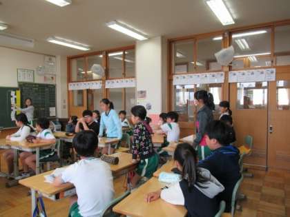 運動会のめあてにつながるキーワードを出し合っていました。この意見が代表委員会で集約され、学校全体のめあてがつくられます。