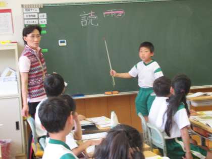 黒板の前に出て、新出漢字の気をつけるポイントを説明していました。みんな、よく聴いていますね。