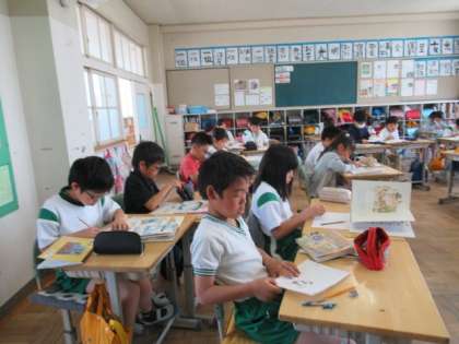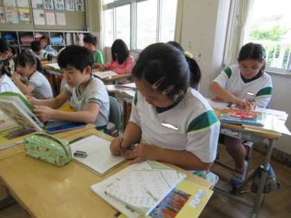 友だちに、おすすめの本の紹介文を書いています。おもしろかったところ、どきどきしたところ…、たくさん紹介していました。