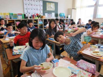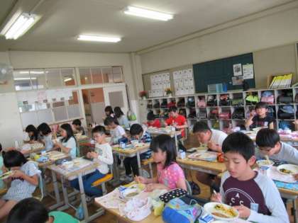 今日の給食には、「こどもの日」にちなんで柏餅が出ました。好みの違いで、苦手だから一口に減らす子と、その分のおかわり争奪戦に挑む子と、モチベーションの大きく分かれる柏餅でした。
