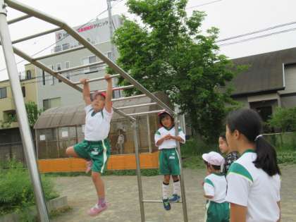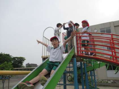 総合遊具は、子どもたちのお気に入り。たくさんの子どもたちが遊んでいます。