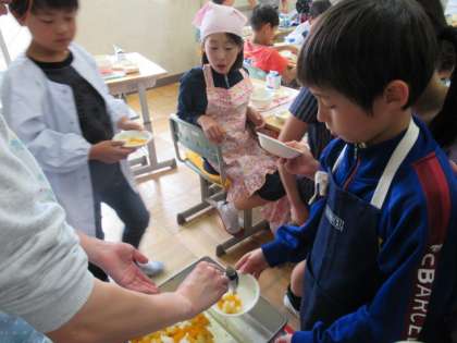 3年生も、おいしくいただきました。ごきげんです! おかわり希望者が殺到していました。
