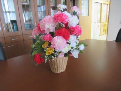 今日は、お花ボランティアのみなさんとPTA役員さんとで、校内各所に飾られたお花を、5月バージョンに模様替えしてくださいました。5月のお花はカーネーション。