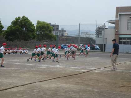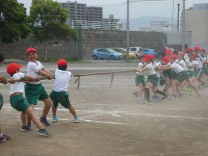 運動会の団体競技である綱引きに、初めて挑戦しました。