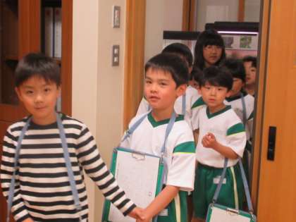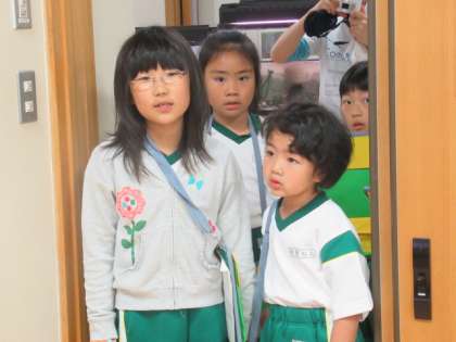 校長室へは、入り口で学級と名前を言ってから入室します。2年生がお手本を見せてくれました。