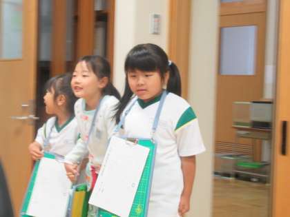 校長室へは、入り口で学級と名前を言ってから入室します。2年生がお手本を見せてくれました。