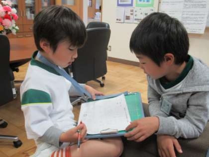 2年生が、校舎図のどこのお部屋か教えてくれました。やさしくて頼もしい2年生です。