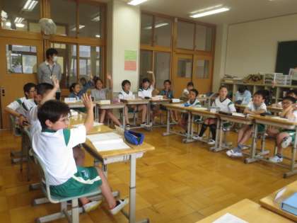 昼休みに代表委員会を行いました。今年度の運動会のスローガンについて、みんなで真剣に話し合いました。